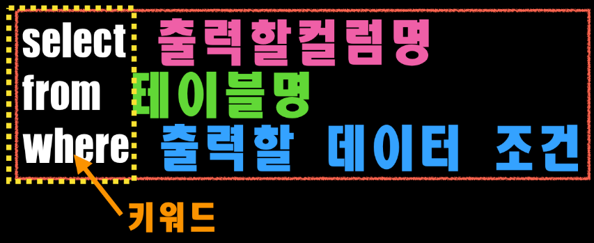 select, from, where 이 세 개를 키워드라고 합니다. 물론 키워드는 더 있습니다. 우선 기본 구조에서의 키워드를 알려드립니다.
