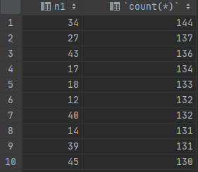 2등인 27번 부터는 10등까지 격차가 적지만, 그래도 1등인 34번은 무려 144회나 나오면서 2등과도 격차가 꽤 납니다.