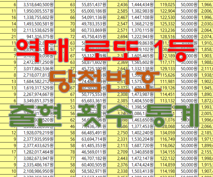 물론 랜덤하게 당첨번호는 나오지만, 그래도 그동안 가장 많이 당첨이 되는 번호들을 알고 접근을 한다면 조금이나마 로또 당첨 확률이 높일 수도 있지 않을까요? ㅎㅎ