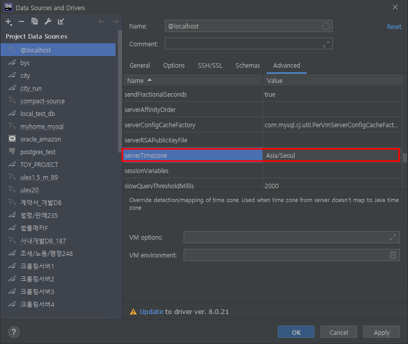 그러고나서 severTimezone이라는 파라미터에 "Asia/Seoul" 이라고 입력을 해주시면 됩니다.