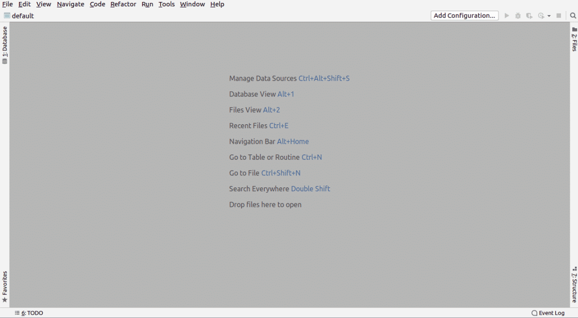 datagrip 설치가 완료되고, 최초 실행을 하고 나면 몇 개의 tip 메시지들이 뜨고, 아래처럼 휑한 화면을 마주하게 됩니다. 여기서 조금 당황스러우실 수 있으나 천천히 아래 스텝을 따라오시면 됩니다.