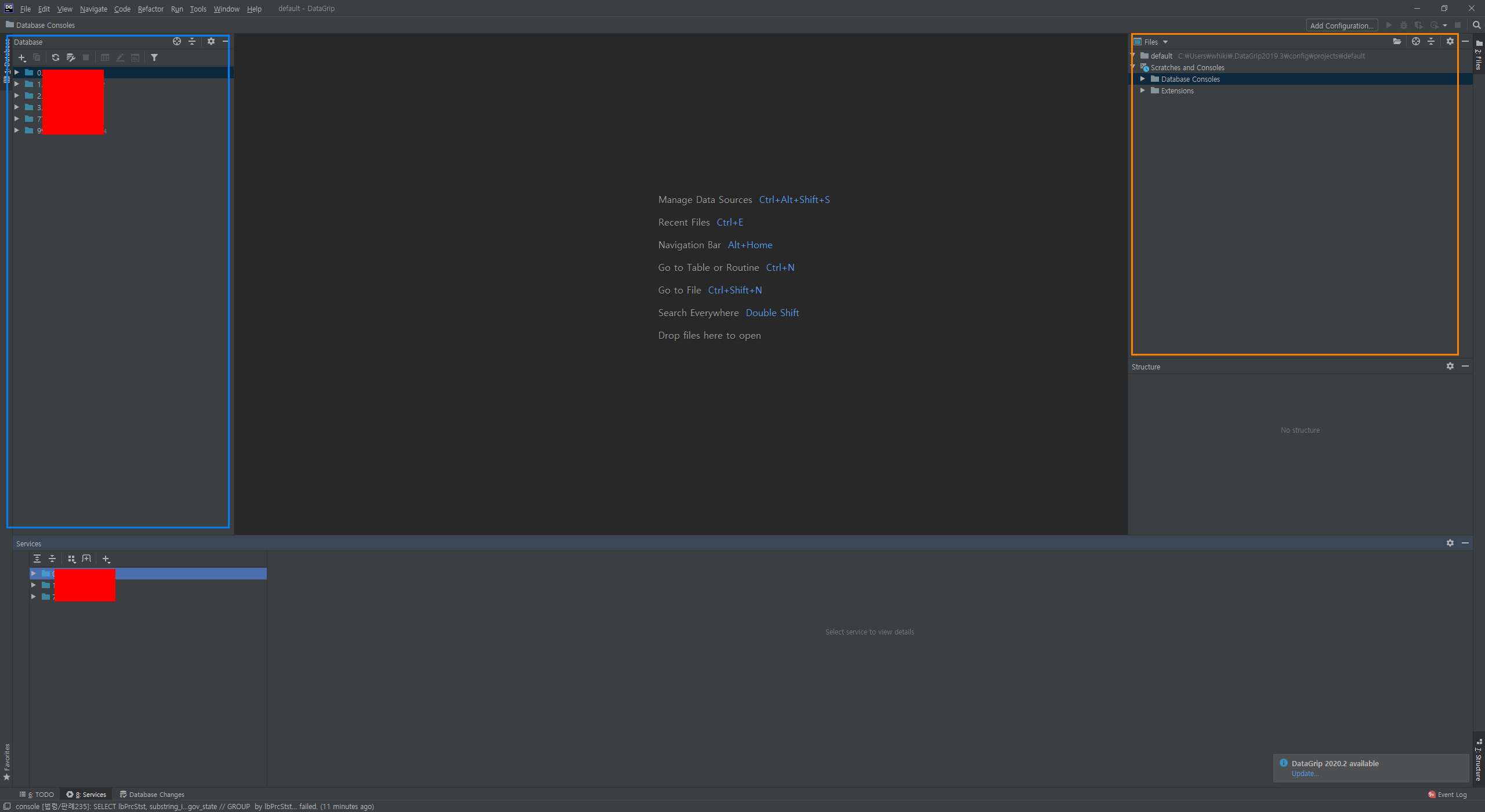 datagrip 초기 화면 설정