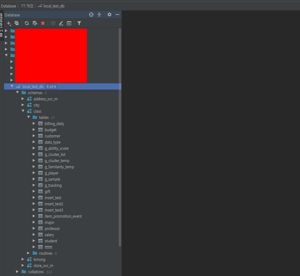 그리고 나면 연결된 DBMS가 좌측의 Database 윈도에 나타난 것을 보실 수 있습니다.