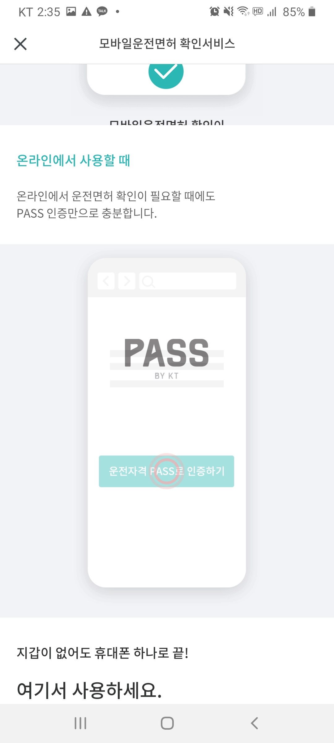 온라인에서는 애플리케이션끼리 연동되어 <운전자격 PASS로 인증하기> 버튼만 눌러주면 끝납니다!