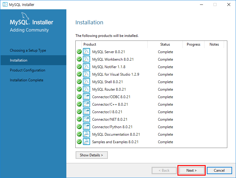 모든 MySQL 설치가 종료된 것으로 보입니다.