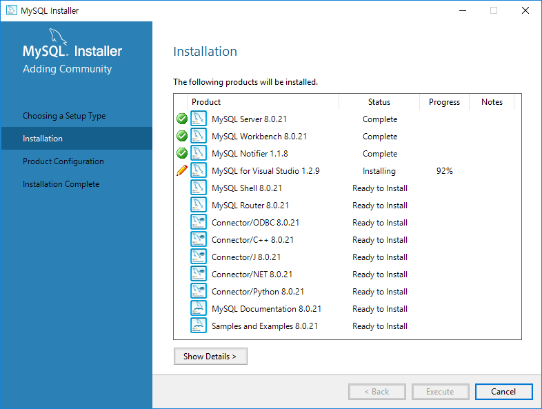모든 MySQL 설치가 종료된 것으로 보입니다.
