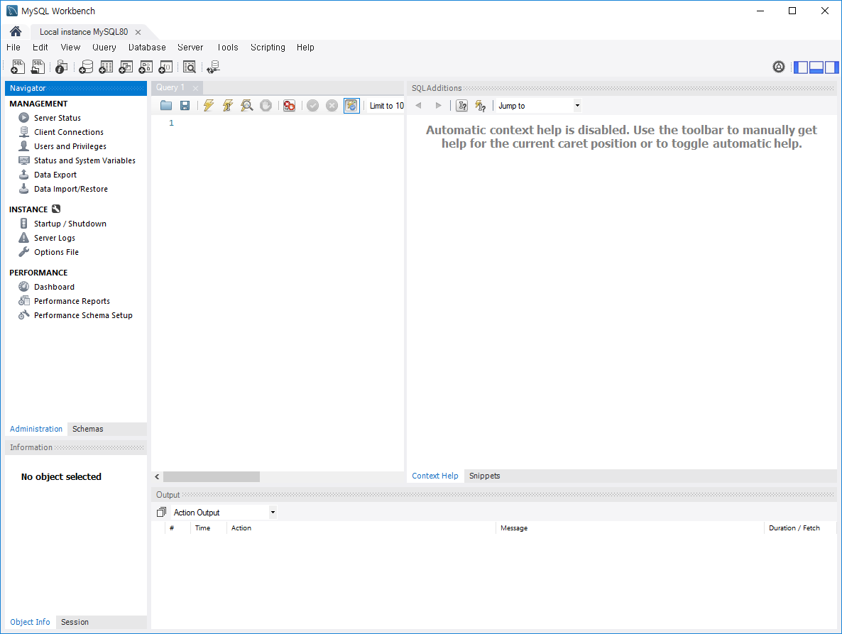 잘 실행이 되었고, 우리가 방금 설치했던 MySQL Server와도 연결이 되어 있는 것을 확인할 수 있습니다.