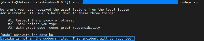 centos 내 sudoers에 내가 사용하는 계정이 등록되어 있지 않아서 생기는 오류 입니다.