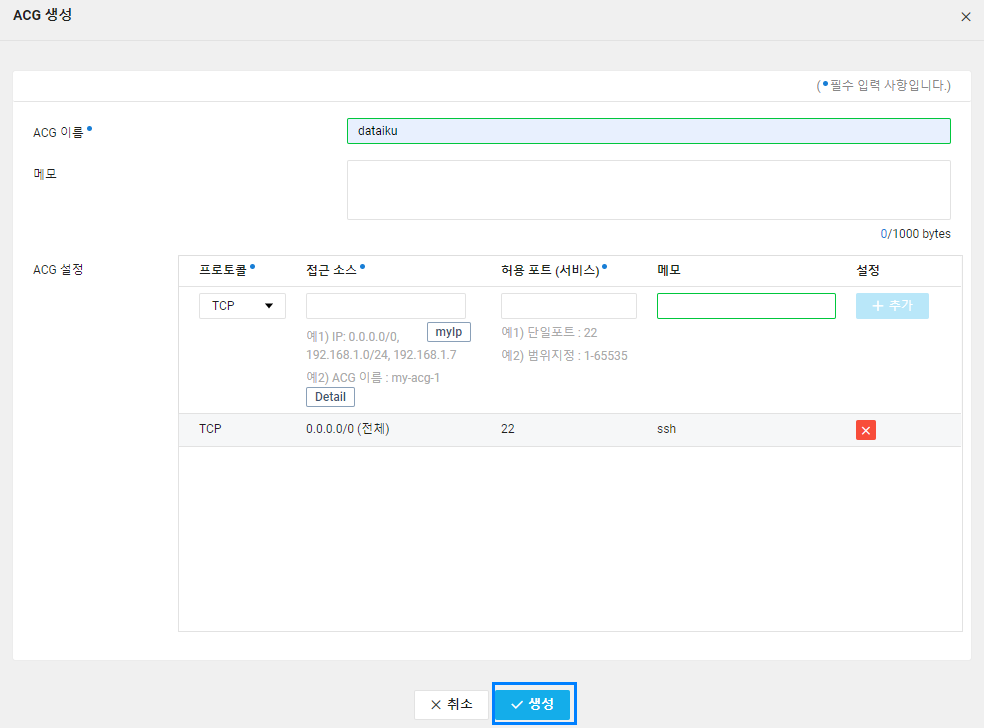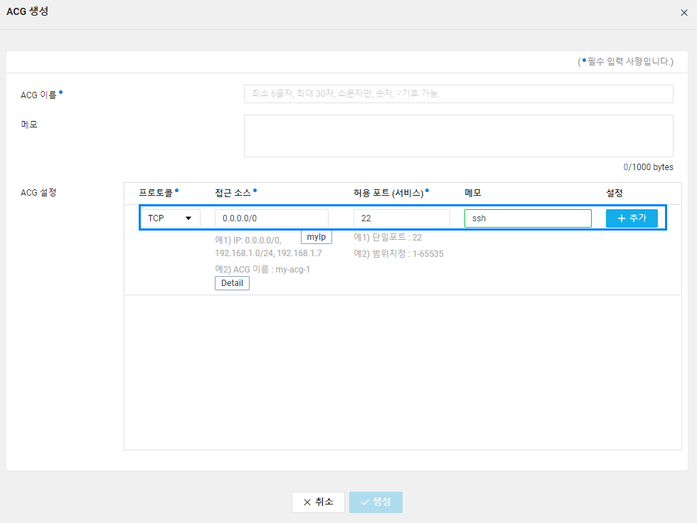 다들 아시겠지만, ACG는 서버 방화벽 설정이라고 생각하시면 됩니다.