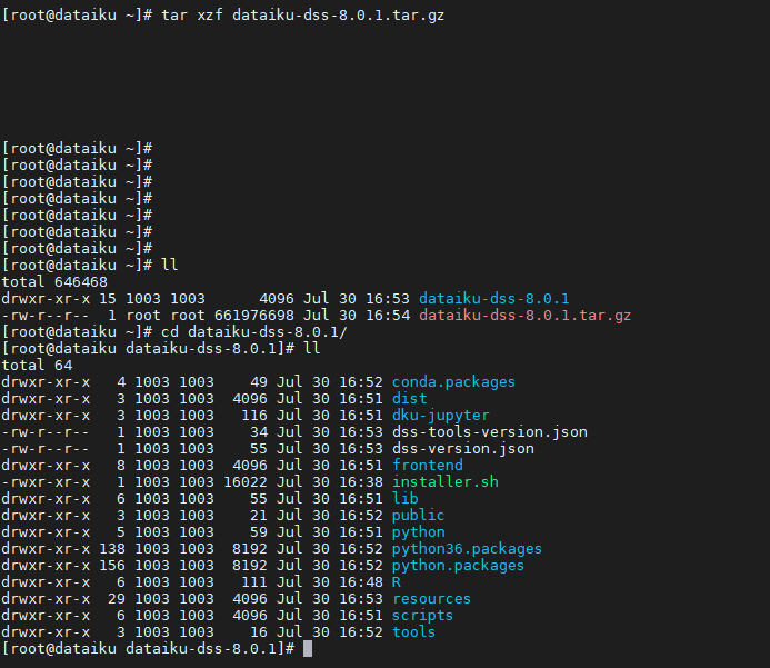tar xzf dataiku-dss-8.0.1.tar.gz
