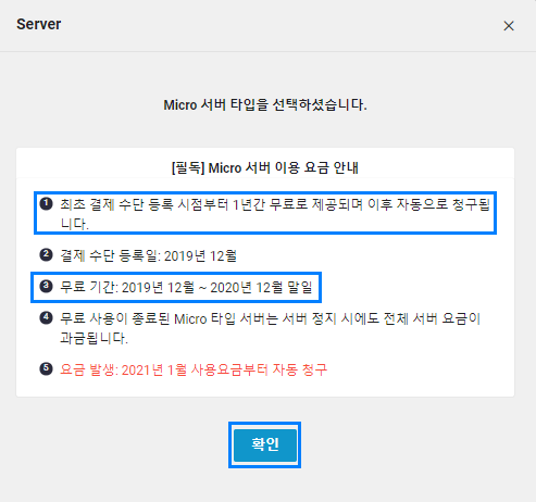 Micro 서버는 1년간 무료로 제공이 됩니다.