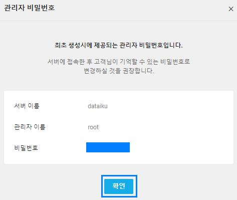 무작위로 생성이 되어 있기 때문에 접속을 위해서 관리자 비밀번호를 확인합니다.