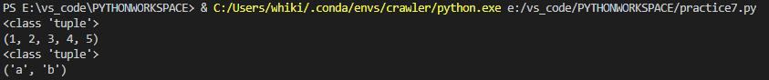 숫자와 문자 모두 튜플로 선언이 되었고, 그 내용을 출력하여 확인할 수 있습니다.