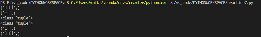 class 가 각각 str과 tuple로 출력 된 것을 확인할 수 있습니다.