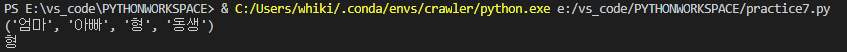 우선 family 라는 튜플을 선언하고, 그 안에 "엄마", "아빠", "형", "동생"이라고