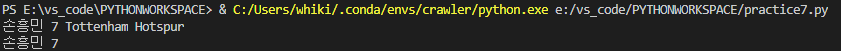 (player, back_num, team) = ("손흥민", 7, "Tottenham Hotspur")