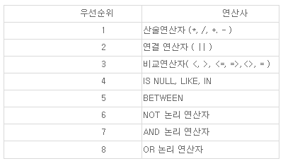 위에 있는 5개의 보기 가운데 우선순위가 가장 낮은 것은 OR 입니다.
