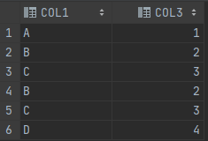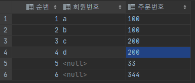 위 두 테이블의 문제의 SQL과 같이 union all 과 union 으로 각각 실행을 한다면 결과는 아래와 같습니다.
