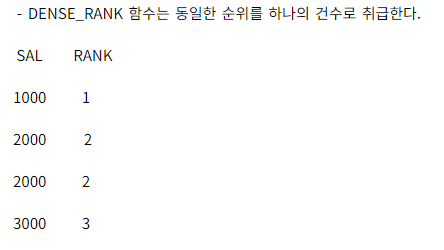 dense_rank의 경우 동일한 순위를 하나의 건수로 취급하여 rank를 표시 하게 됩니다.