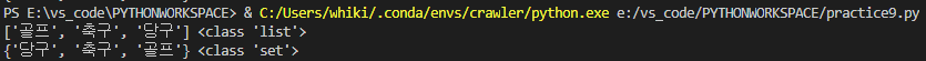 2020/09/07 - [python 기초강의] - 파이썬 set (집합) 문법 독학 정리 #6