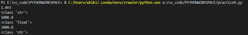 str 자료구조에서 float 자료구조로 변경 될때는 그 값이 지수가 실수 형태로 변형되지만 실수인 값이 str 자료구조로 변형 된다고 해서 다시 지수로 변형 되지는 않는다는걸 알 수 있습니다.