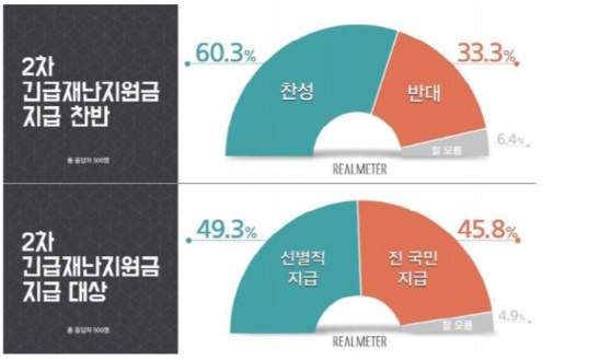 우선적으로 2차 긴급재난지원금을 지급하는데는 전반적으로 동의 하지만, 선별 지급에는 대립의견이 있었습니다.