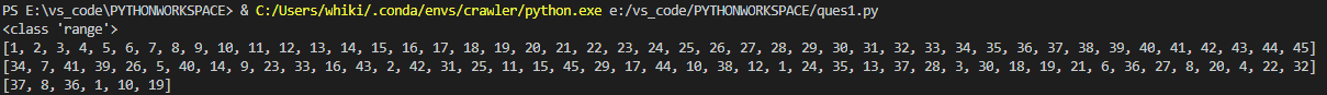 그리고 print 함수로 lotto_num의 type을 확인 합니다. 결과는 <class 'range'>라고 나오는데, 이것을 list함수로 감싸서 자료구조를 range에서 list로 변환 합니다.