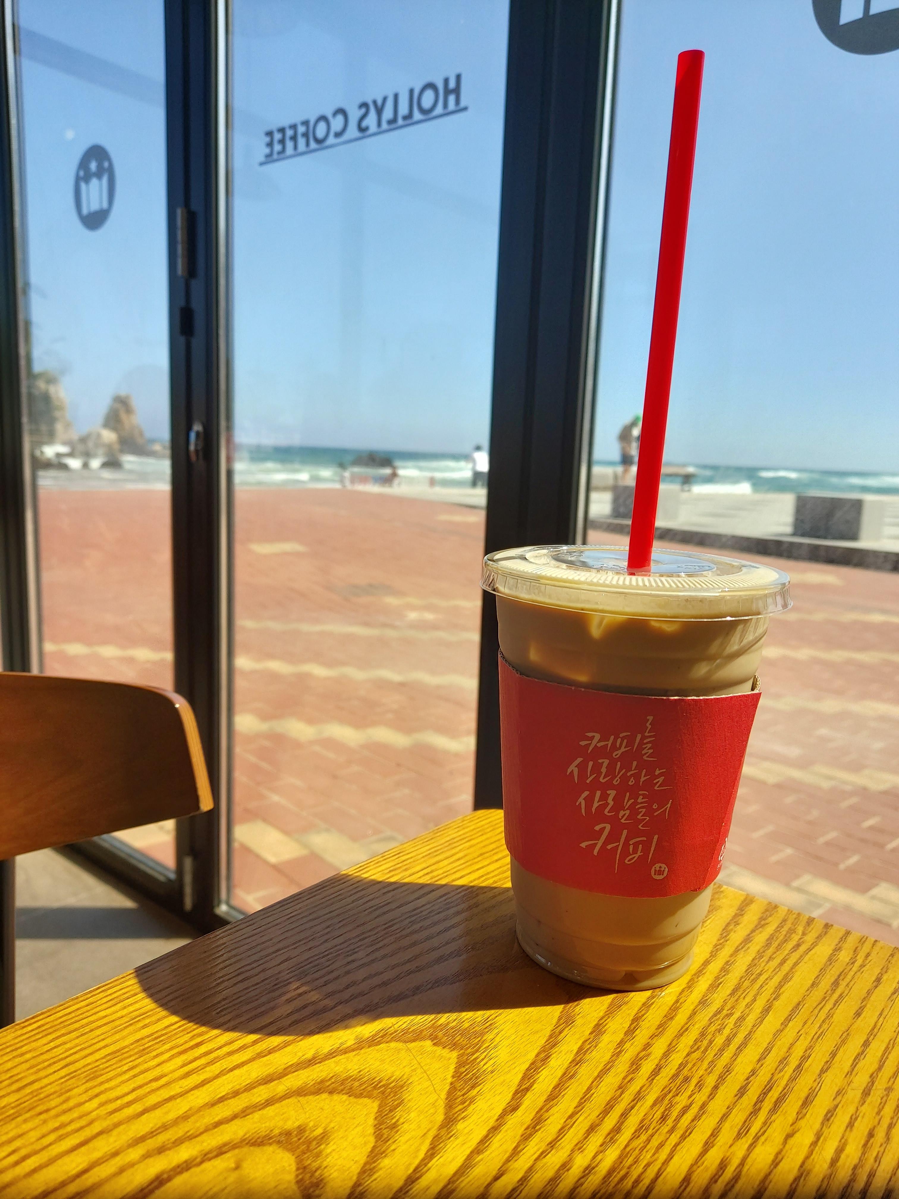 여기 있는 할리스 커피에서 달달한 라떼를 주문해서 먹습니다.