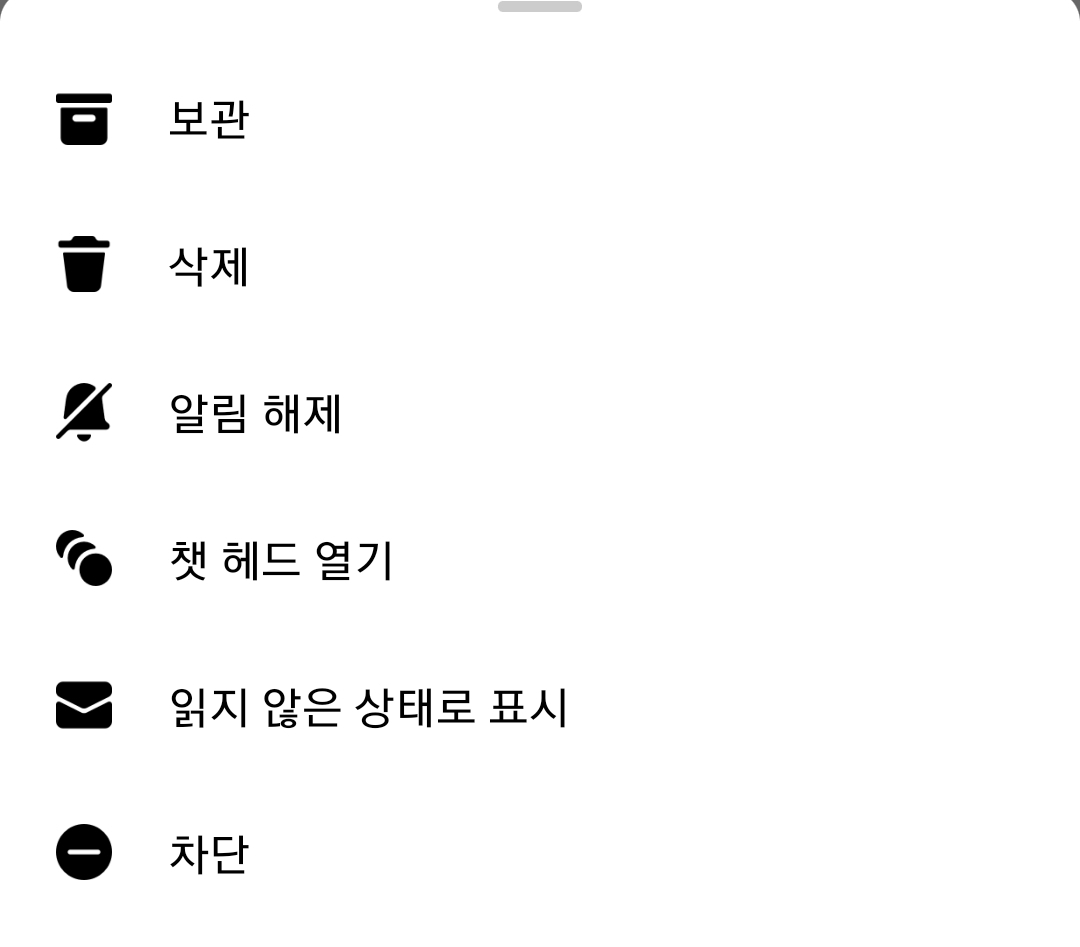 여기에서 불필요한 채팅 목록 위에서 길게 터치를 합니다. 꾸~~~욱!! 이렇게요.
