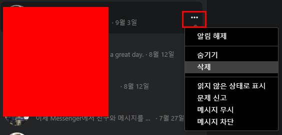 페이스북 메세지 삭제 방법, 페메 메세지 삭제 방법