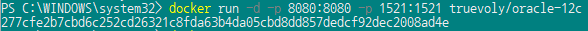 docker run -d -p 8080:8080 -p 1521:1521 truevoly/oracle-12c