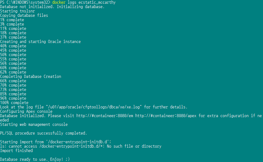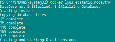 왜냐하면, 컨테이너를 운영하는데 필요한 관련 설정을 하고, oracle instance를 셋팅하고, database file들을 복사하는데 시간이 걸립니다.