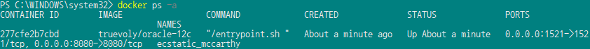 이렇게 윈도우에 도커를 설치하고, 또 도커의 컨테이너에 오라클을 설치하는것 까지의 과정이 끝났습니다.