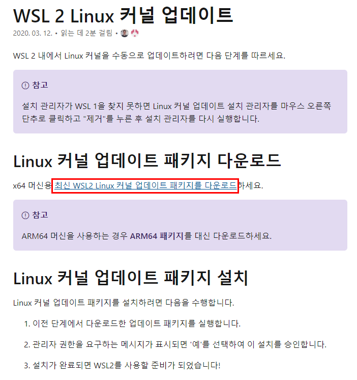 그럼 msiwsl_update_x64.msi 파일을 다운로드 합니다.