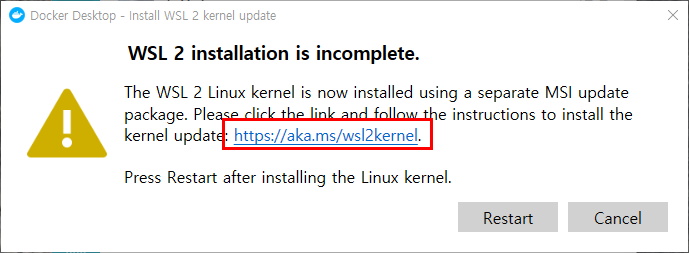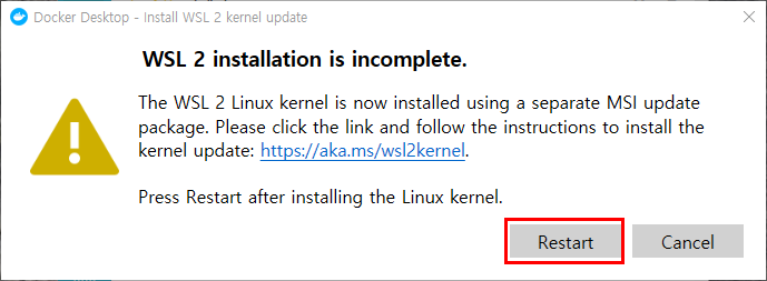 그리고 Linux kernel이 잘 설치가 되었으니 <Restart> 버튼을 클릭합니다.