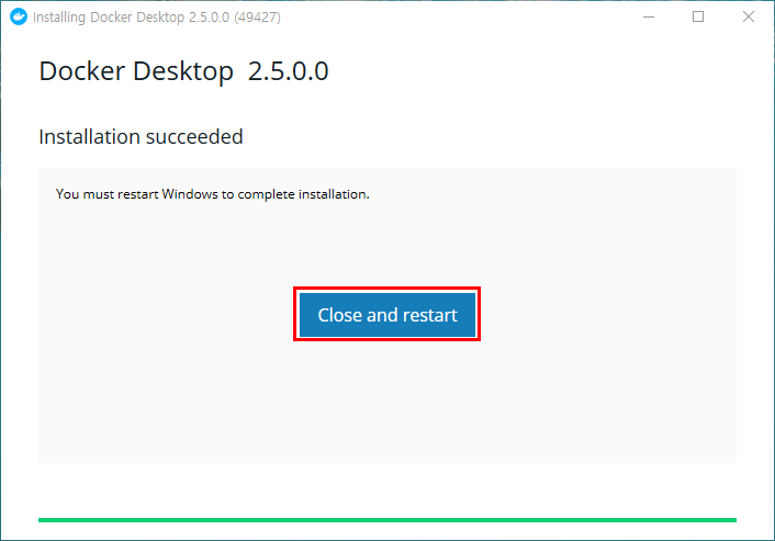 <Close and restart>를 눌러 주시면 설치가 성공 한것 입니다.