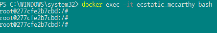 윈도우의 Power Shell 이나 cmd를 이용하여 우선 도커 컨테이너에 접속을 합니다.