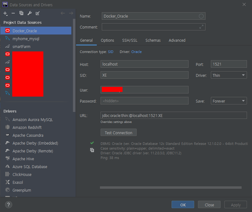 Port 부분은 전 1521로 설정 했기에 그렇게 적어줍니다.