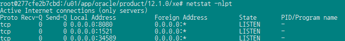 그리고, 전편에서 설정한데로, 8080 웹 port와 오라클 port로 설정한 1521 포트가 잘 열려 있는지 확인 하겠습니다.