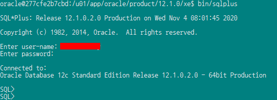 다음은 여기서 sqlplus를 이용해서 설치한 오라클 서버에 접속을 합니다.