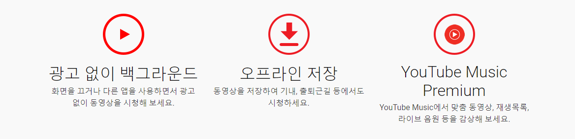 다음은 유튜브 뮤직 프리미엄을 이용 할 수 있는 혜택입니다.