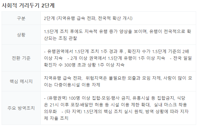 코로나 거리두기 2단계 상세 내용
