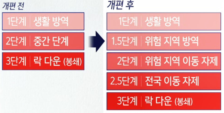 최근에 기존 코로나 거리두기는 3단계로 운영하던것을 총 5단계로 세분화 하였죠.