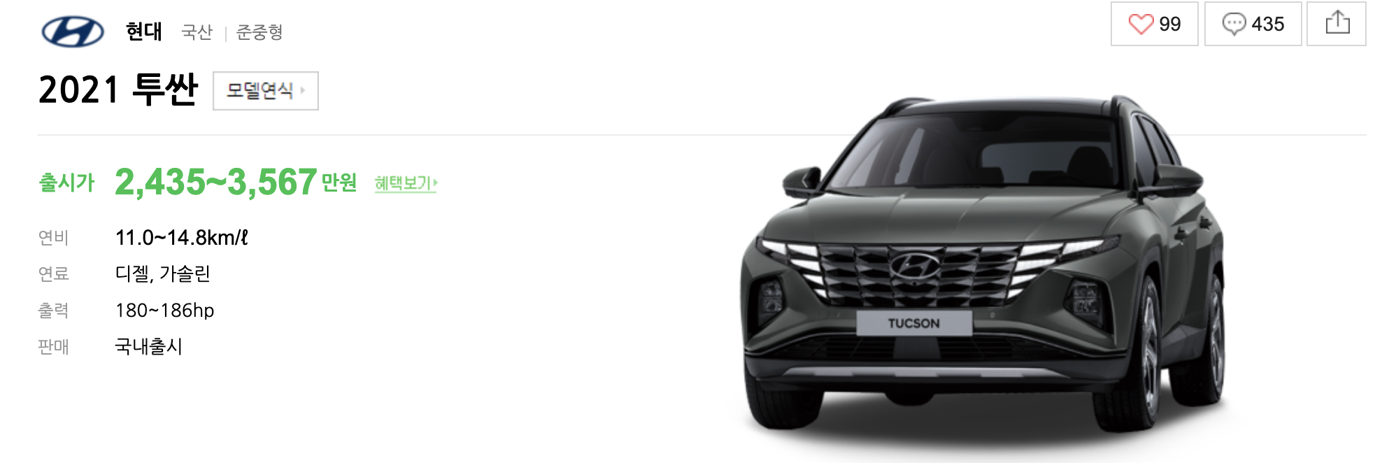 아무래도 투싼의 타켓은 젊은층이라서 그런것 같습니다.