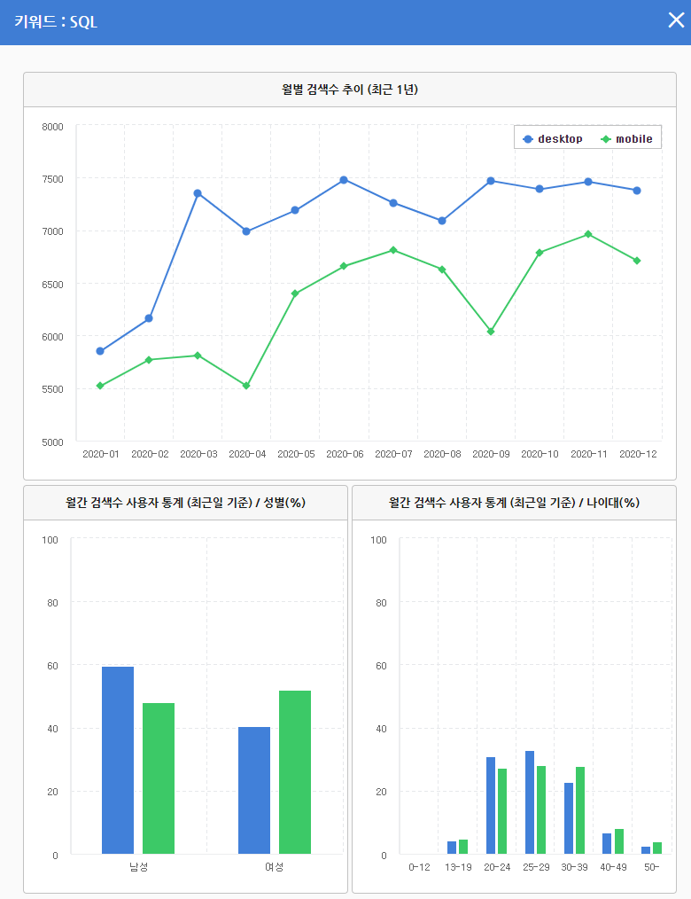 위와 같은 그래프 화면을 통해서 대략 어떤 성별과 나이대에서 어느 시기에 검색이 늘어나고 줄어드는지에 대한 추이를 살펴 볼 수 있겠습니다.
