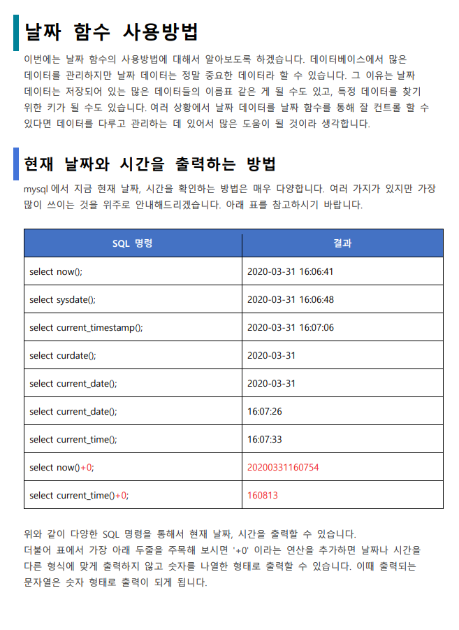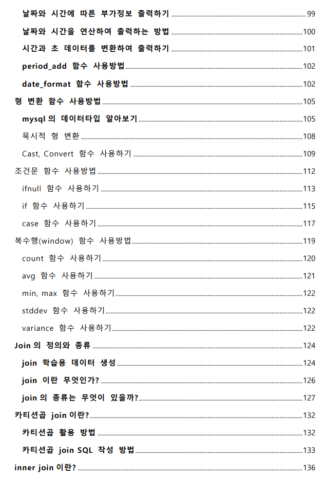 처음 mysql을 설치하고, workbench를 설치하고, select를 하는 기본 문법부터 함수, join, 서브쿼리 등에 대해서 순서대로 기술이 되어 있습니다.