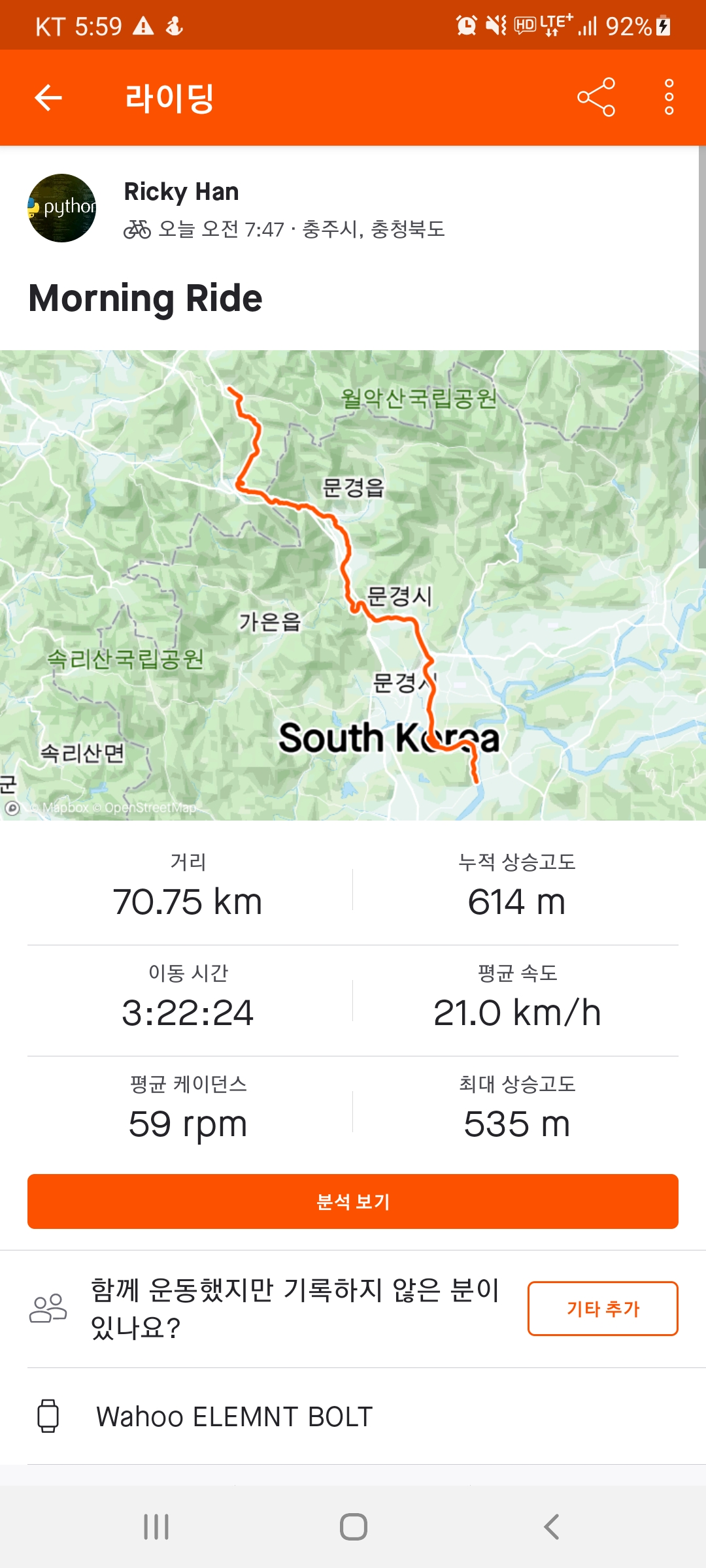 그렇게 수안보온천에서 아침 7시30분부터 라이딩을 준비하고 시작합니다.