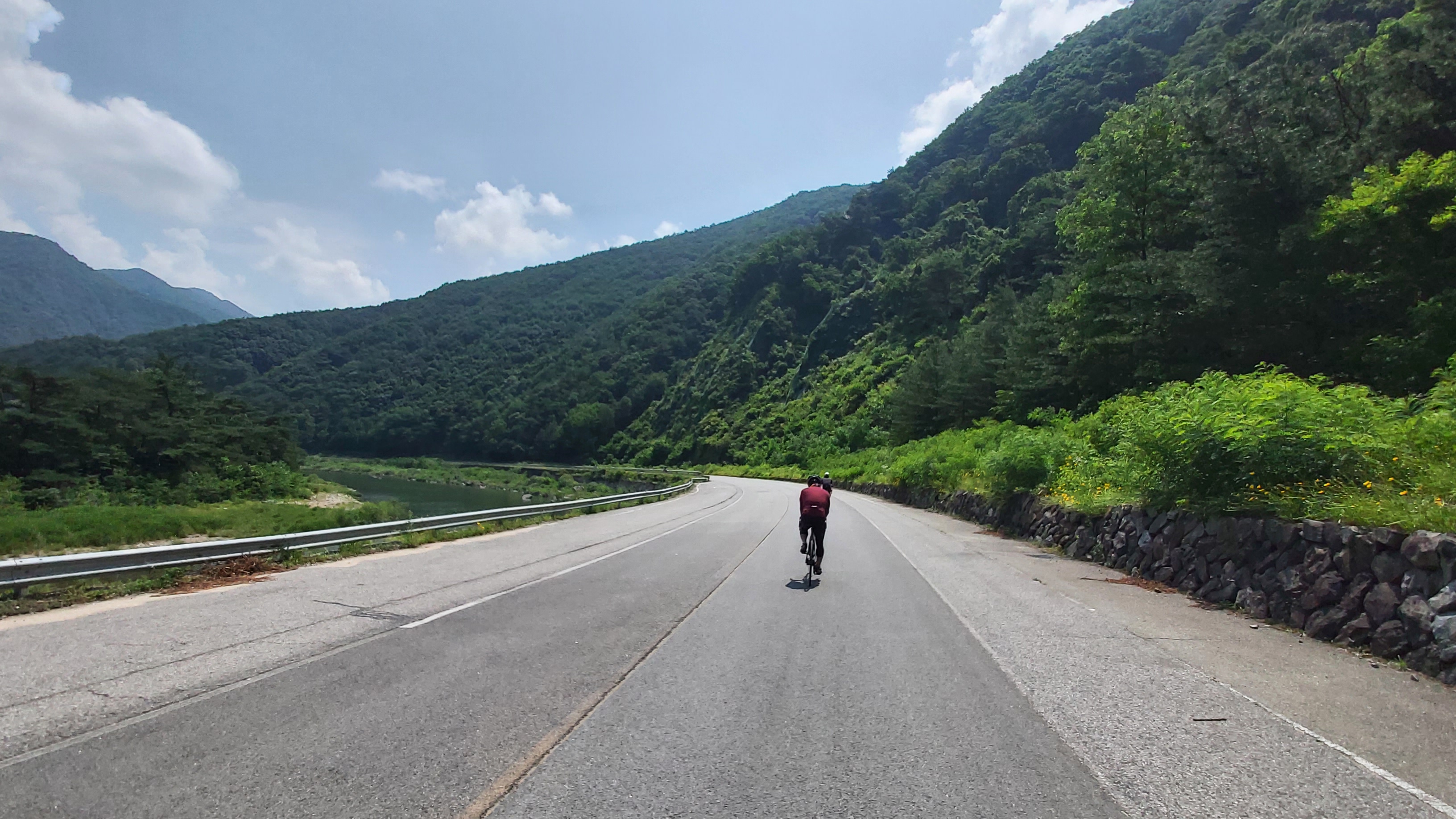이화령 다운힐은 길이도 길고, 경사도 급한 느낌이라 브래이킹을 하면서 안전하게 내려가야 합니다. 하지만, 이게 림브에 그렇게 고가의 자전거가 아니다보니 뭔가 브레이킹 할때마다 떨림도 느껴지고, 하루빨리 기변해서 저도 디스크 브레이크 달고 타고 싶단 생각이 계속 들더라구요.