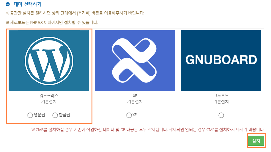 전 워드프레스 한글판으로 진행을 하겠습니다.