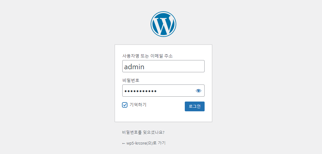 설치가 완료되고 나서 본인의 호스팅 주소 뒤에 xxxxx.dothome.co.kr/wp-admin 이런식으로 접속을 했을때 아래와 같이 워드프레스 로그인 화면이 나오면 성공이 되신겁니다.